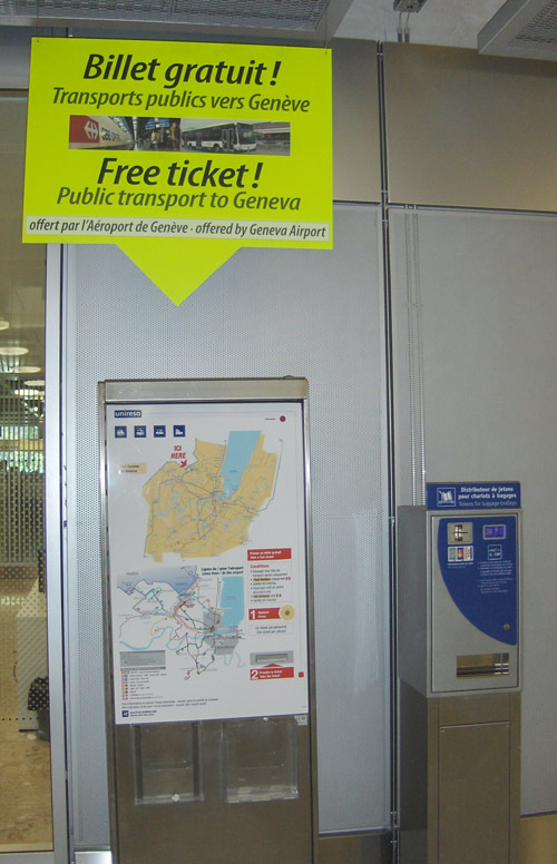 - Deux machines de billeterie gratuite auprès des TPG - Transports publics genevois sont disponibles au niveau des sortie de bagages.