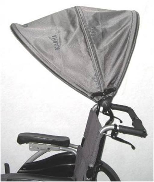 dans le coffre ou abriterait en cas de mauvais temps (pluie, neige, verglas…). Une sorte de parapluie avec option pour fauteuil roulant !