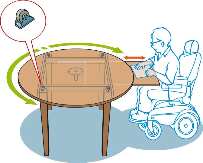 Mais pour une personne en fauteuil roulant, aveugle ou sourde, le plateau coulissant permet de rapprocher les commandes et rend l'utilisation plus facile et plus serène (toujours en position
