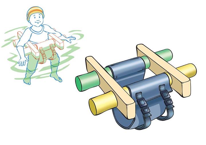 Les sorties à la piscine sont un vrai plaisir pour les enfants en plus d’être un moyen pour travailler leur tonus. Pour améliorer ces moments dans l’eau, deux professionnels du handicap ont imaginé un harnais fait à partir de petites buchettes de piscine, de tissu et de plaques de Plastazote. Ainsi la prise en charge de l’enfant est plus interactive et lui laisse plus d’autonomie.