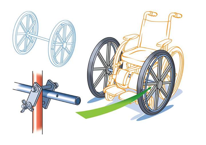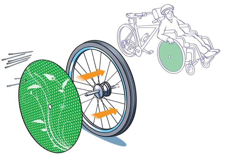 Ce système pourrait aussi être adapté sur les fauteuils roulant : Ainsi, en plaçant un tel système surmonté d'une butée dans le moyeu