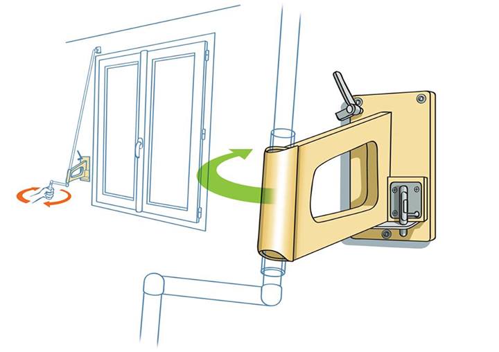 Pas simple de remonter ou descendre un volet roulant à une seule main ! C’est pourquoi ce bricoleur a mis au point un système ingénieux qui maintient la manivelle comme le ferait l’autre main. Il s’agit d’un écarteur fixé au mur à l’aide de contreplaqué et d’un tube à son extrémité. L’écarteur peut être ensuite rabattu contre le mur pour ne pas gêner. Simple mais il fallait y penser !