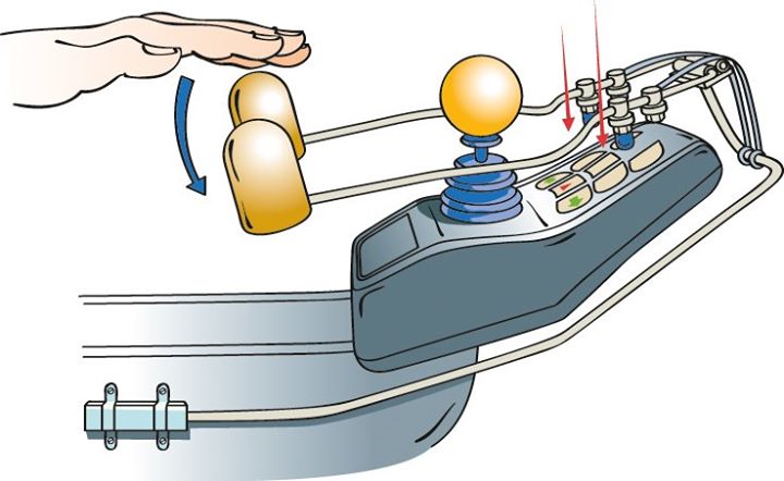Un effleurement de l'interrupteur déplace l'aiguille très lentement : un mouvement très discret du poignet, d'un doigt, du coude suspend le déplacement de l'aiguille et la fait correspondre au dessin qui signifie un désir, un besoin, un refus, etc.