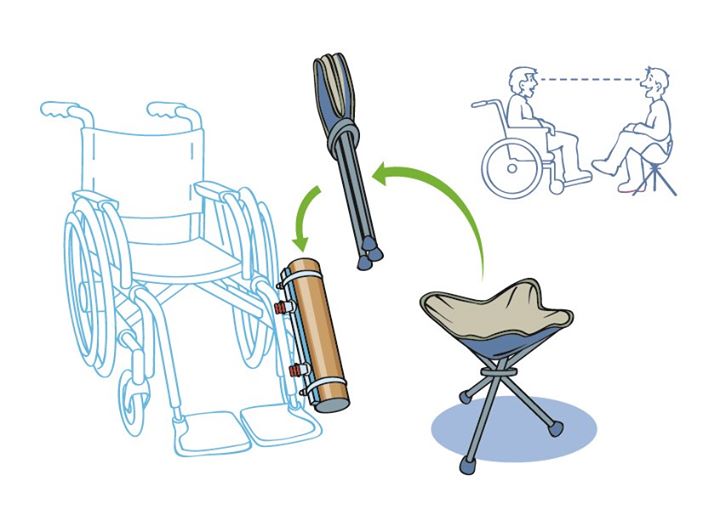 Le projet de Philippe est un siège pliable adaptable à un fauteuil roulant. Il a été fait pour l’une de ses connaissance proche, Edwige. L’objectif est qu’une personne en situation de handicap puisse inviter son interlocuteur à s’asseoir et à discuter « les yeux dans les yeux »