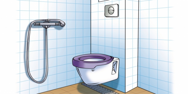 Dans le but de diminuer le nombre de transferts en fauteuil, M. Marreau a réuni les fonctions des toilettes et de la douche : La douche 2 en 1 !