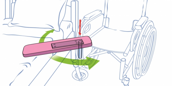 Pour offrir plus d'autonomie à son beau père atteint de la maladie de Charcot, Régis a fixé sur son fauteuil roulant une planche de transfert pivotante formé d'un tube métallique en en "L" et deux plaques en médium.