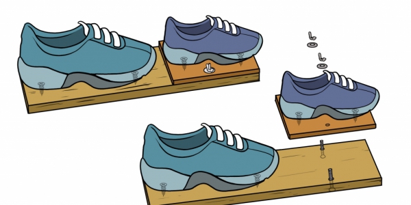 Fabrice est atteint d'une maladie évolutive. Ayant su marcher petit, aujourd'hui, il a perdu cet acquis. Pour lui permette de retrouver la sensation de marcher, ses parents ont eu l'ingéniosité de créer des "chaussures-tandem".
