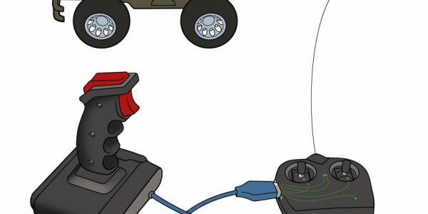 à cause de difficultés de coordination bi-manuelle et de dextérité, l'utilisation d'un boîtier de commande pour voiture radiocommandée leur est souvent impossible.