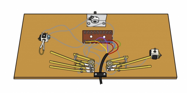 De ce constat, il a eu l'idée de remplacer le boîtier de commande d'origine par un joystick d'ordinateur en soudant quatre fils électriques sur les quatre contacts du circuit imprimé du boîtier et les reliant à une interface de prise en série (DB9M) après avoir préalablement repérer les correspondances avec les contacts du joystick.