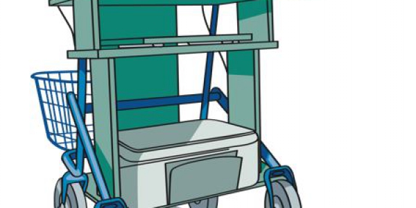 Le jeune étudiant travaillant beaucoup sur ordinateur, l'idée lui est venue d'adapter un déambulateur pour y intégrer son unité informatique. Ainsi il peut suivre ses cours en milieu scolaire ordinaire et déplacer avec son bureau d'étude.