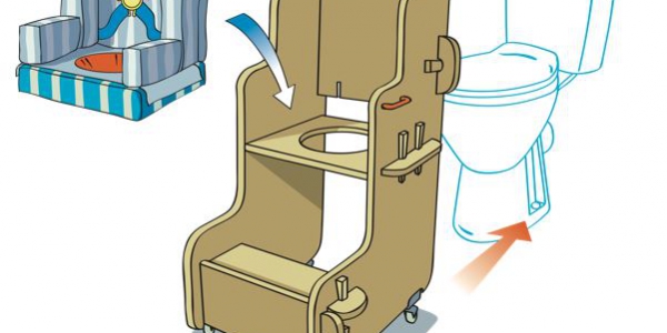 Maxime n’arrivait pas à tenir sur les toilettes tout seul. Son papa a donc imaginé une tablette pour qu’il puisse prendre appui quand il s’y trouve.