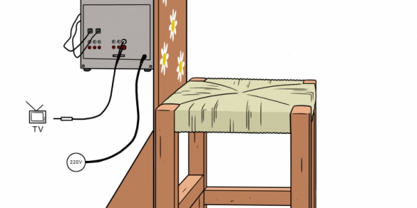 Sa maman lui a donc fabriqué la chaise aux oreilles, un tabouret en bois dont le dossier supporte deux enceintes reliées à la prise casque au téléviseur ou de la chaîne Hi-fi). Il est important que celles-ci soient plaquées contre le bois pour faire caisse de résonance et que des tampons en plastique soient collés aux 4 pieds afin que les ondes ne s'échappent pas dans le sol. Assise sur sa chaise aux oreilles, Mia ressent alors les vibrations des sons émis et peut s'en imprégner.