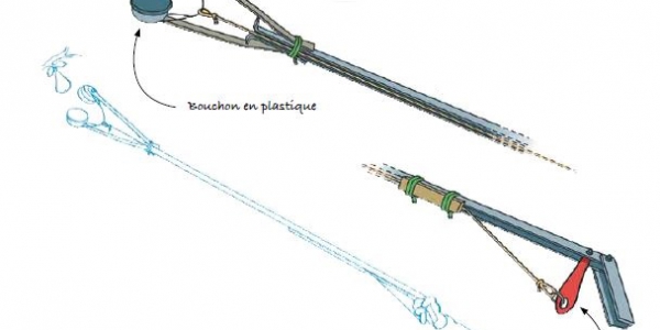 Légère, la pince longue est manipulable d'une seule main. Jean a utilisé un profile aluminium de 2 mètres de long auquel il a ajouté un système de pince en plastique actionné par un fil de nylon. La poignée est réalisée à l'aide d'un vieux manche de pinceau.