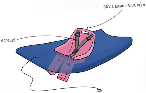 En mettant au point cette planche de baignade, composée d'un siège vélo encastrée dans une planche de bodyboard, le grand-père d'Angèle, dont l'autonomie est limitée, la comble de joie et soulage ses parents.