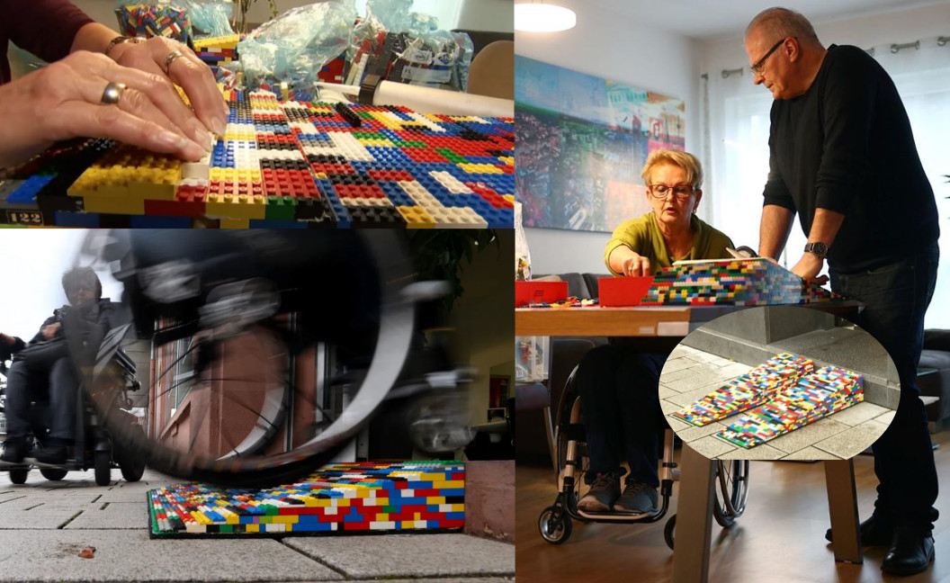 Afin de rendre sa ville plus accessible et de palier les lacunes architecturales, une sexagénaire de Hanau (Allemagne), Rita Ebel, elle-même en fauteuil roulant depuis 25 ans suite à un accident de voiture, s'est illustrée en construisant des rampes d'accessibilité en Lego.