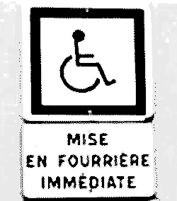 Ensemble, c'est possible de le faire. Il suffit pour cela que chacun y mette du sien : Prenez simplement un cliché si vous voyez une voiture garée sur une place handicapée sans macaron ni de raison valable et faites nous parvenir le résultat. Faites nous parvenir les résultats afin que, exemples à l'appui, nous puissions protester contre la passivité des autorités responsables.