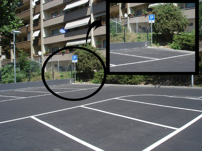 Malheureusement les indications sont manquantes dans tous ces derniers cas: Les places de parc ne sont nullement indiqués par des panneaux mais juste par des indications au sol; de même