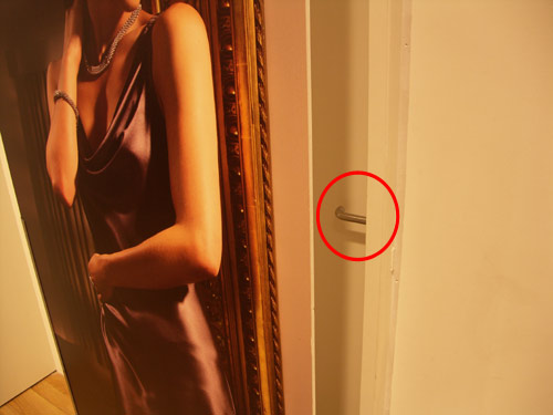 Mais le déplacement de ce panneau est tributaire du nombre de clients dans le magasin puisqu'il pourrait facilement obstruer le passage. De plus le personnel, peut serviable, devrait rester près de la porte pour ranger à nouveau le panneau.