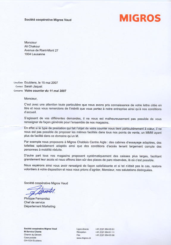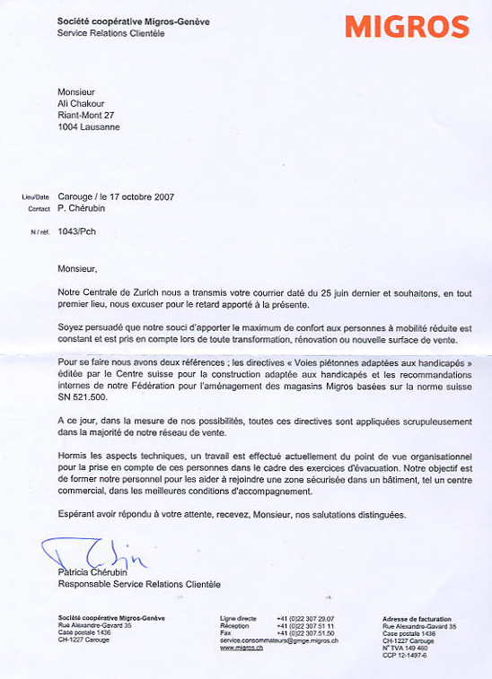 Dans leur courrier du 6 novembre et du 10 décembre respectivement, cela n'a pourtant l'air de déranger ni le responsable de Migros Vaud ni la direction du Parking.