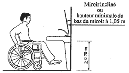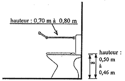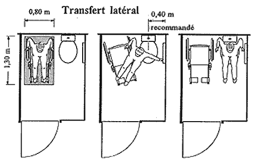 Attention : la largeur de la porte d'accès des WC est d'environ 80cm seulement, ce qui peut être insuffisant pour des fauteuils imposants tels que ceux des tétraplégiques! |
