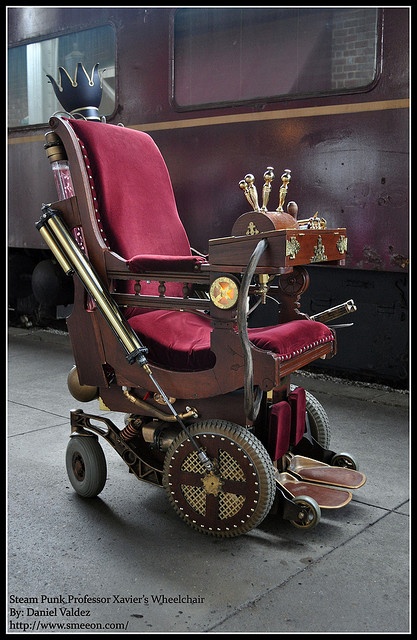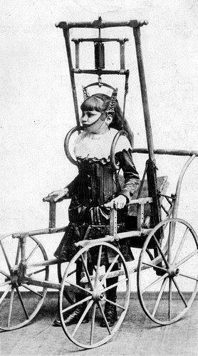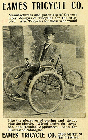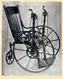 Vers 1881, des arceaux apparaissent et permettent de manipuler le fauteuil de manière indépendante et ce n'est qu'en 1912 qu’'un moteur de 1 cheval 3/4 est attaché à un tricycle pour invalide.