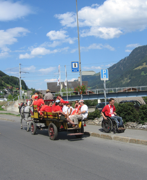 Ça SHOMS à Champéry - - Le Service Hospitalier de l'Ordre de Malte en Suisse organise jusqu'à dimanche un camp pour des handicapés en fauteuil. L'Ordre de Malt, à ne pas confondre avec l'ordre du malt qui lui sévit un peu partout voire tard le soir, a investi la place. Il faut dire aussi que les lieux leur appartiennent déjà un peu. Quoi qu'il en soit, c'est la fête au village! Et on y voit apparaître de nouveau - Champéry Tourisme