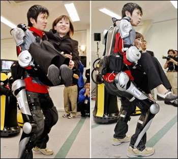 Des ingénieurs japonais, toujours à la pointe de la technologie en matière de robotique, ont développé un " robot costume " (Robot Suit) présenté lors de l'Exposition Universelle qui a lieu actuellement au Japon, visant à faciliter la marche des personnes âgées et handicapées et décupler la force des salariés qui doivent manipuler des objets lourds. Le nom de code de ce " costume mécanique " est HAL5. Il pèse une quinzaine de kilos et est alimenté par des piles. Des capteurs électriques placés sur la peau de l'utilisateur détectent les mouvements du corps et les amplifient. Mais cet équipement est aussi capable de fonctionner seul et de permettre à des personnes âgées ou handicapées de marcher par elles-mêmes, explique l'un des ingénieurs nippons en charge de ce projet à l'Université de Tsukuba, qui ajoute qu'à terme, les humains pourraient se transformer en superman. Par exemple, fixé aux jambes de son utilisateur, le Robot Suit peut faciliter la marche et tous les déplacements en reproduisant les mouvements initiés par les muscles inférieurs. Le robot se révèle particulièrement utile lors des montées et descentes d'escaliers. Cet appareil sera destiné prioritairement aux hôpitaux et au public handicapé. Compte tenu du vieillissement rapide de sa population, le Japon tente de développer depuis quelques années, les robots destinés à assister et venir en aide aux personnes âgées, de manière à ce qu'elles puissent vivre � leur domicile le plus longtemps possible. Toutefois, le gouvernement vient de sortir un rapport indiquant qu'il fallait prévoir le développement de nouveaux robots, visant à pallier le manque de main d'œuvre dont devrait souffrir le pays dans les années à venir, avec le départ en retraite des baby-boomers. En 2004, les retraités représentaient 19.5% des Japonais et ce groupe pourrait atteindre le tiers (35%) de la population totale en 2050.