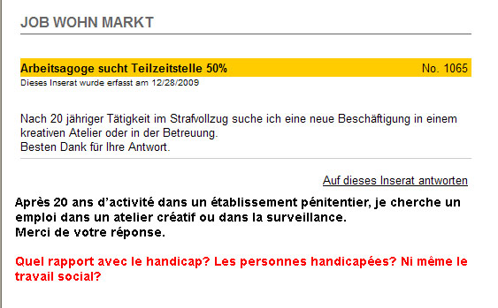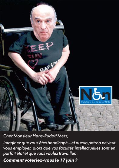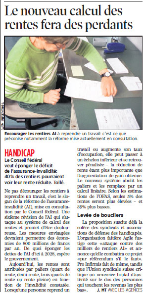 (Et tout cela se passe le Lendemain de la votation de la 5e révision! Il ferait mieux d'économiser les frais de ce cirque et de redistribuer l'argent à l'A.I... Ca tombe bien, les caisses en ont besoin, les handicapés aussi! )