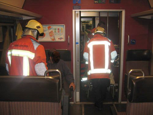 1. La zone d'embarquement et de débarquement doit étre modifiée de sorte à permettre aux personnes en fauteuil roulant de quitter le train de façon indépendante et par leurs propres forces. La rampe est trop fortement inclinée.