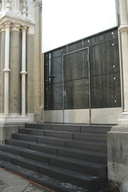 3. La main courante des escaliers qui mènent du 1er au 2ème niveau doit être rallongée et reliée à la barre de la porte d'entrée. Cette adaptation est nécessaire pour permettre aux personnes aveugles, malvoyantes et à mobilité réduite d'emprunter les escaliers en toute sécurité.