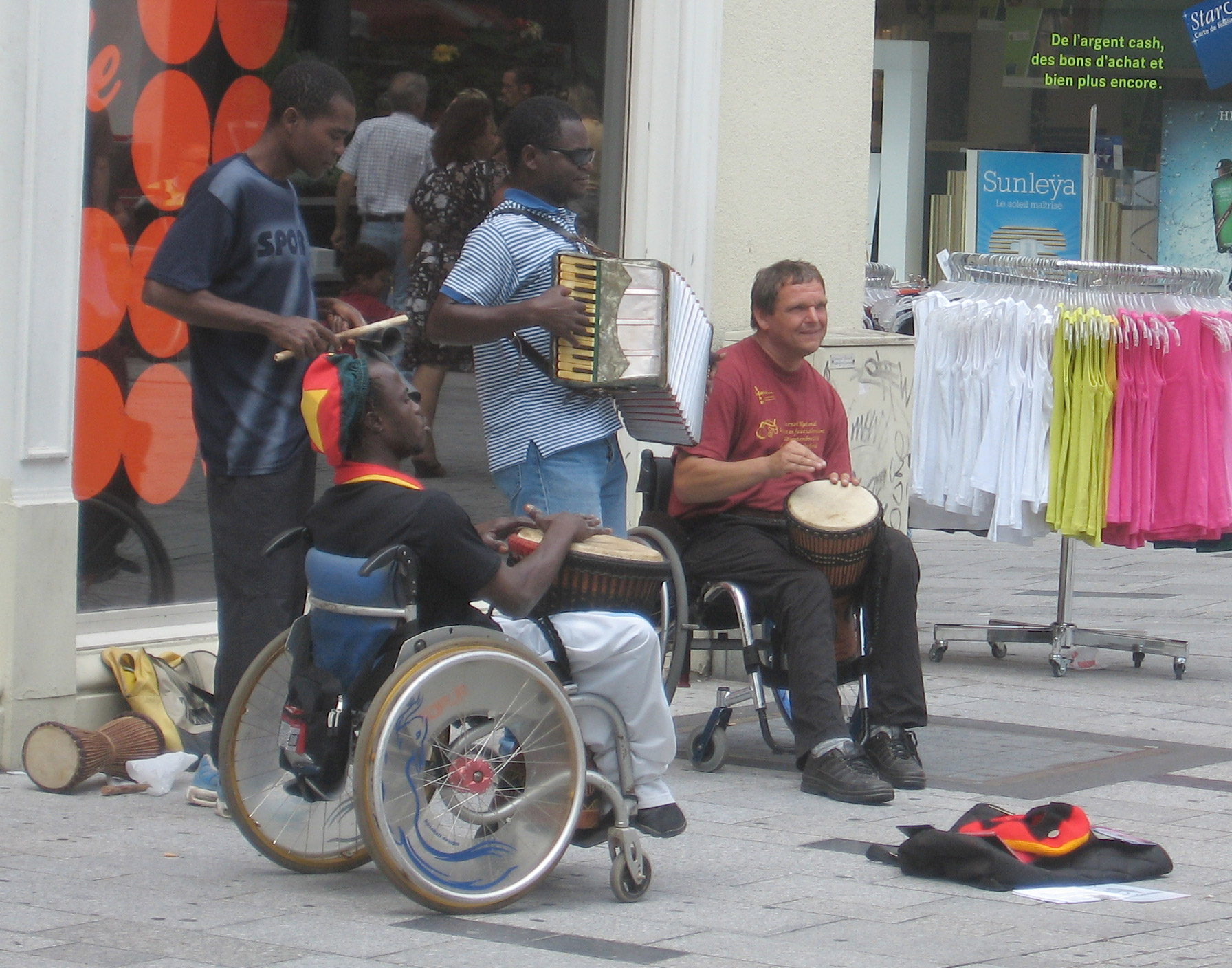 "KOTEGA" (récipient en Mooré, langue du Burkina Faso) Groupe de quatres musiciens itinérant dont un aveugle, un paraplégique et un autre atteint de la polio... Un groupe de bons amis, d'artistes de rue et de coeur qui oeuvre pour l'association Handicap Solidaire. À recommander !!