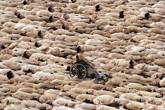 Mais laissons-les parler. Voici le regard de Spencer Tunick sur le handicap et réalisé en mai 2007, au Mexique. Un artiste photographe qui dénude les corps avant de les mettre en scène et de les pendre en photo.