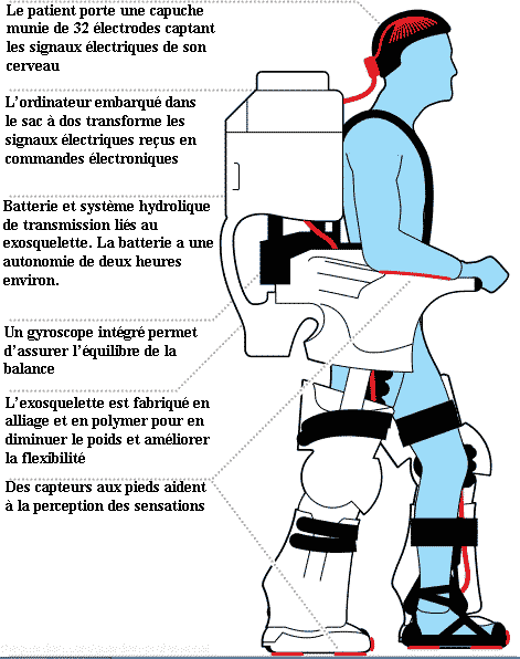 | Il s'agit d'un projet technologique international pour la mise au point d'un exosquelette commandé uniquement par la pensée et le travail neuronal du cerveau. Mené au Duke University de Durham (Caroline du Nord) par le professeur Dr. Miguel A. L. Nicolelis, en collaboration avec de nombreuses autres institutions telles que TUM - Technische Universität München, chargé essentiellement de la mise au point de l'exosquelette, ou l'École Polytechnique Fédérale de Lausanne.