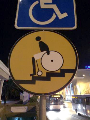 Mais malgré quelques gros progrès dans ce domaine aussi, essentiellement dans les grandes villes d'ailleurs, les accès tels que transports publics ou bâtiments, restent encore très souvent difficiles. Les portes sont en générales trop étroites, surélevées et sans rampe.