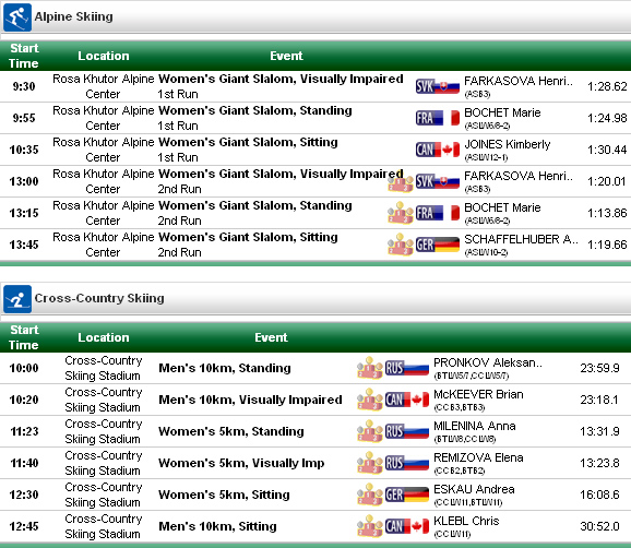 La compétition est ouverte aux athlètes handicapés physiques ou visuels (cécité ou déficience). Selon son handicap fonctionnel, le concurrent peut utiliser un sit-ski (un fauteuil-ski), un siège équipé d’une paire de skis. Les athlètes avec un handicap visuel sont dirigés par un guide à la vue normale.
