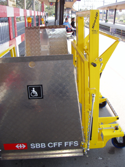 attendant sur le quai à proximité du Mobilift, les CFF fournissent une aide très précieuse pour l'embarquement et le débarquement.