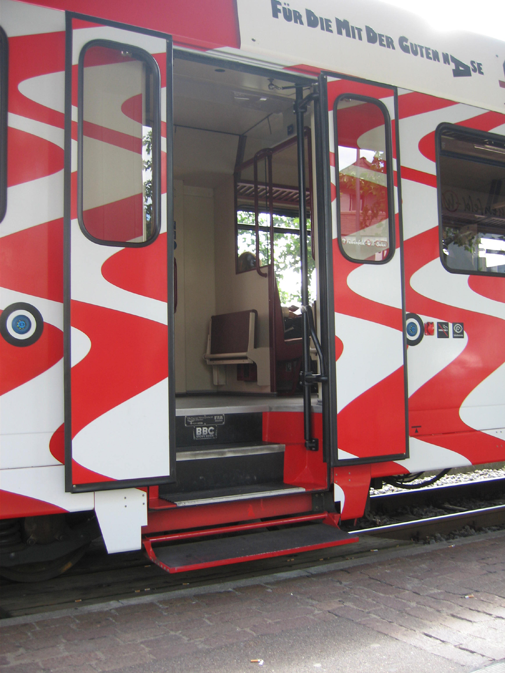 Après des années de non conformité aux lois fédérales contre la discrimination liée au handicap, le LEB a enfin décidé de troquer ses vieilles "brouettes" contre du matériel neuf, à l'image des trams S3 qu'on trouve à profusion en Suisse allemande depuis des années.